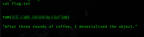 Esta sala quiere que entendamos cómo funcionan las vulnerabilidades de deserialización. La serialización convierte un objeto (como en PHP, Java o Python) en un formato que podemos almacenar o enviar. La deserialización hace lo contrario, pero si la entrada no se valida correctamente, los atacantes pueden explotarla para ejecutar código malicioso.