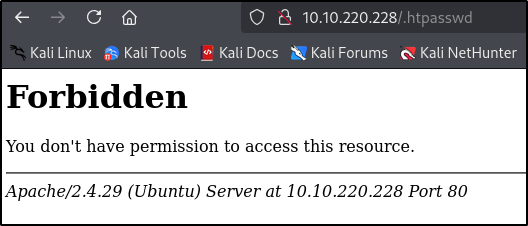 /.htpasswd [Status: 403, Size: 278, Words: 20, Lines: 10, Duration: 47ms]