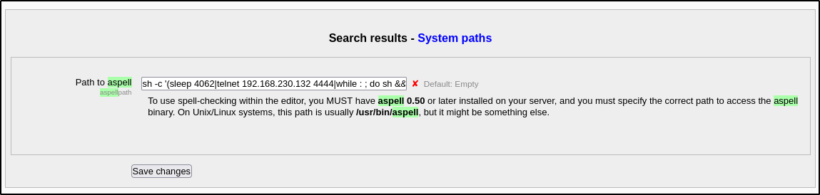После вставки кода нужно добавить новую запись, а затем запустить плагин spellcheck. Это действие триггерит код, и мы получаем reverse shell соединение.