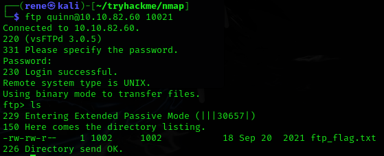 После этого подключаемся по ftp, используя найденные учётные данные и кастомный порт 10021, и находим флаг.