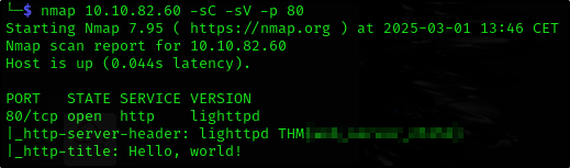 Переход по адресу http://10.10.82.60:8080 показывает небольшой челлендж, который выдаёт флаг после решения. Какой это флаг?