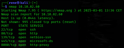 nmap -D 10.10.0.1,10.10.0.2,10.14.99.72 -sN 10.10.82.60