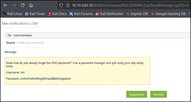 tim@silver-platter:~$ grep -Ri 'password' /var/log 2>/dev/null