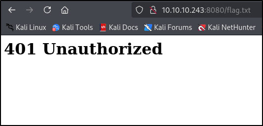 Попробуем перейти на 10.10.10.243:8080/flag.txt