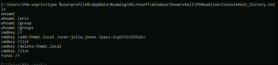 type %userprofile%\AppData\Roaming\Microsoft\Windows\PowerShell\PSReadline\ConsoleHost_history.txt