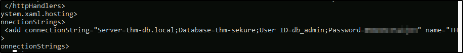 На удалённом хосте запущен веб‑сервер. Найдите любой интересный пароль в файлах web.config, связанных с IIS. Какой пароль у пользователя db_admin?