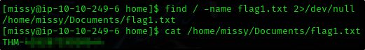 После этого мы можем переключиться на пользователя missy и проверить доступные файлы