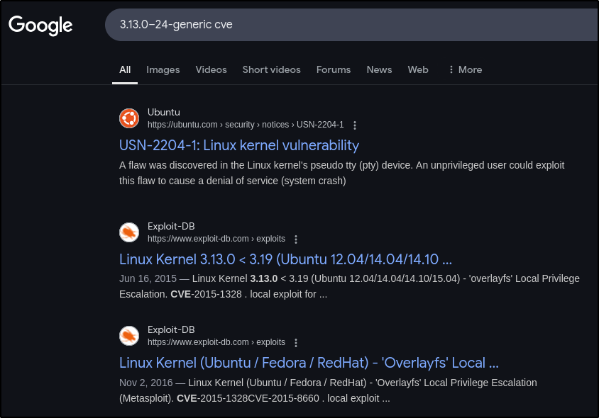 Чтобы ответить на этот вопрос, просто загуглим версию ядра вместе с CVE.