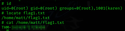 uid=0(root) gid=0(root) groups=0(root),1001(karen)