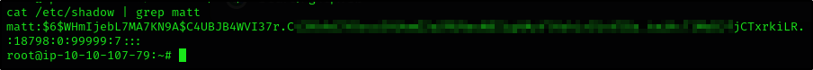 shadowс помощьюcat - Сохраняем хэш пароля пользователя Matt в файл