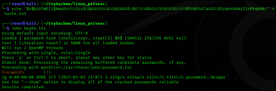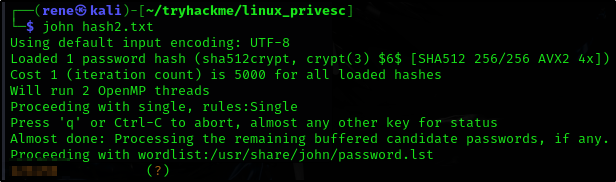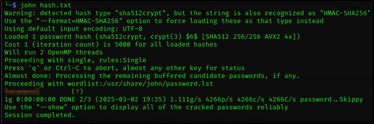 И затем взламываем хеш с помощью john