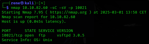 После этого подключаемся по ftp, используя найденные учётные данные и кастомный порт 10021, и находим флаг.