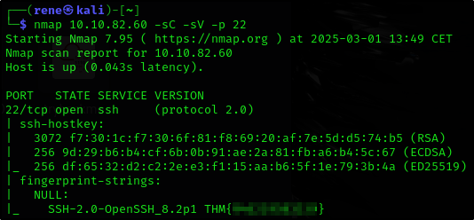 Делаем тот же nmap, но с -p 22 вместо 80.