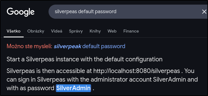 Также, после поиска стандартного имени пользователя Silverpeas, выясняется, что это SilverAdmin.