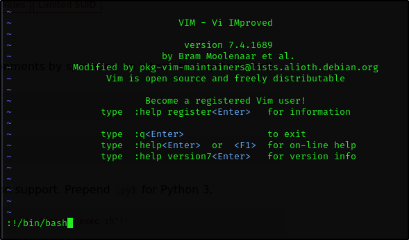 (root) NOPASSWD: /usr/bin/vim