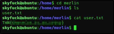 Ок, мы действительно можем получить user flag в каталоге /home/merlin