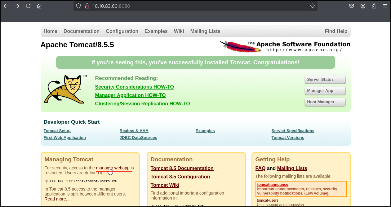 Давайте посетим сайт по адресу http://10.10.83.60:8080/